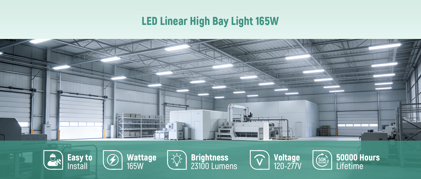 Delivering up to 24,750 lumens with an efficacy of 150 lm/W, this linear high bay ensures bright and uniform lighting for industrial environments.