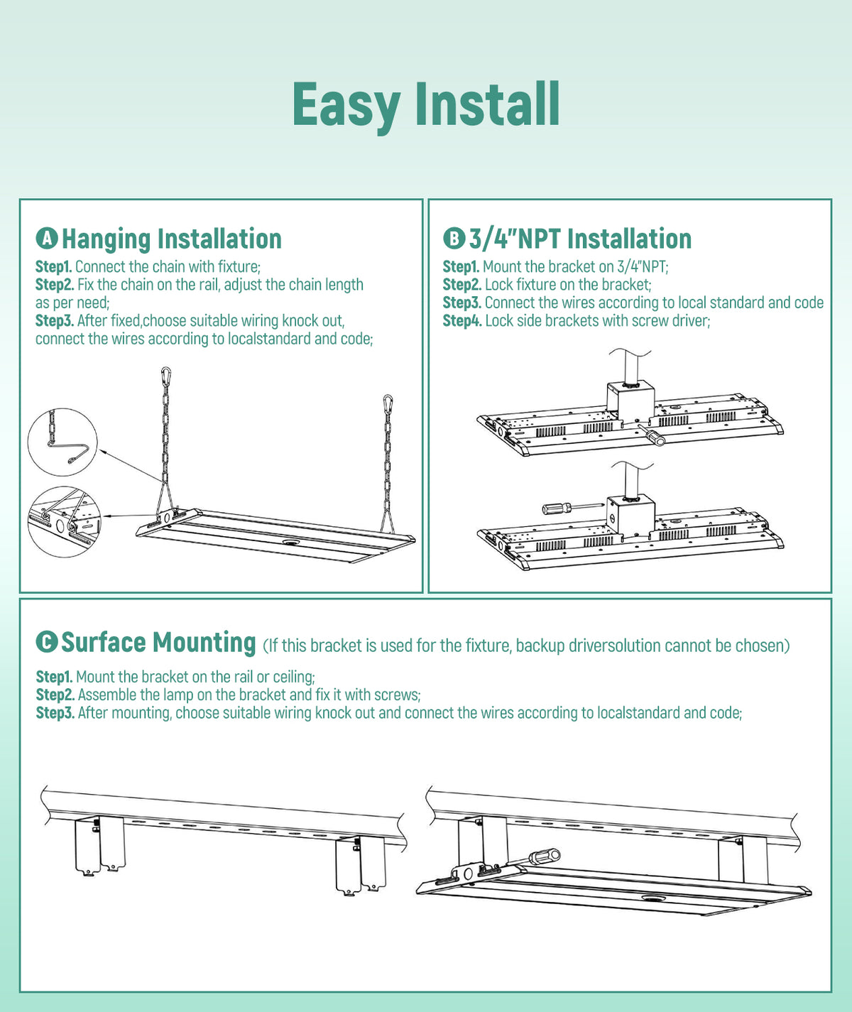 Mounting: Chain mount / Surface mount