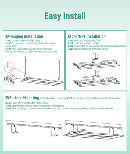 The J-LHB09 LED Linear High Bay is designed for warehouses, factories, and commercial facilities requiring high efficiency and reliable illumination. Featuring adjustable wattage and high lumen output, this fixture provides flexible lighting performance for large indoor spaces.