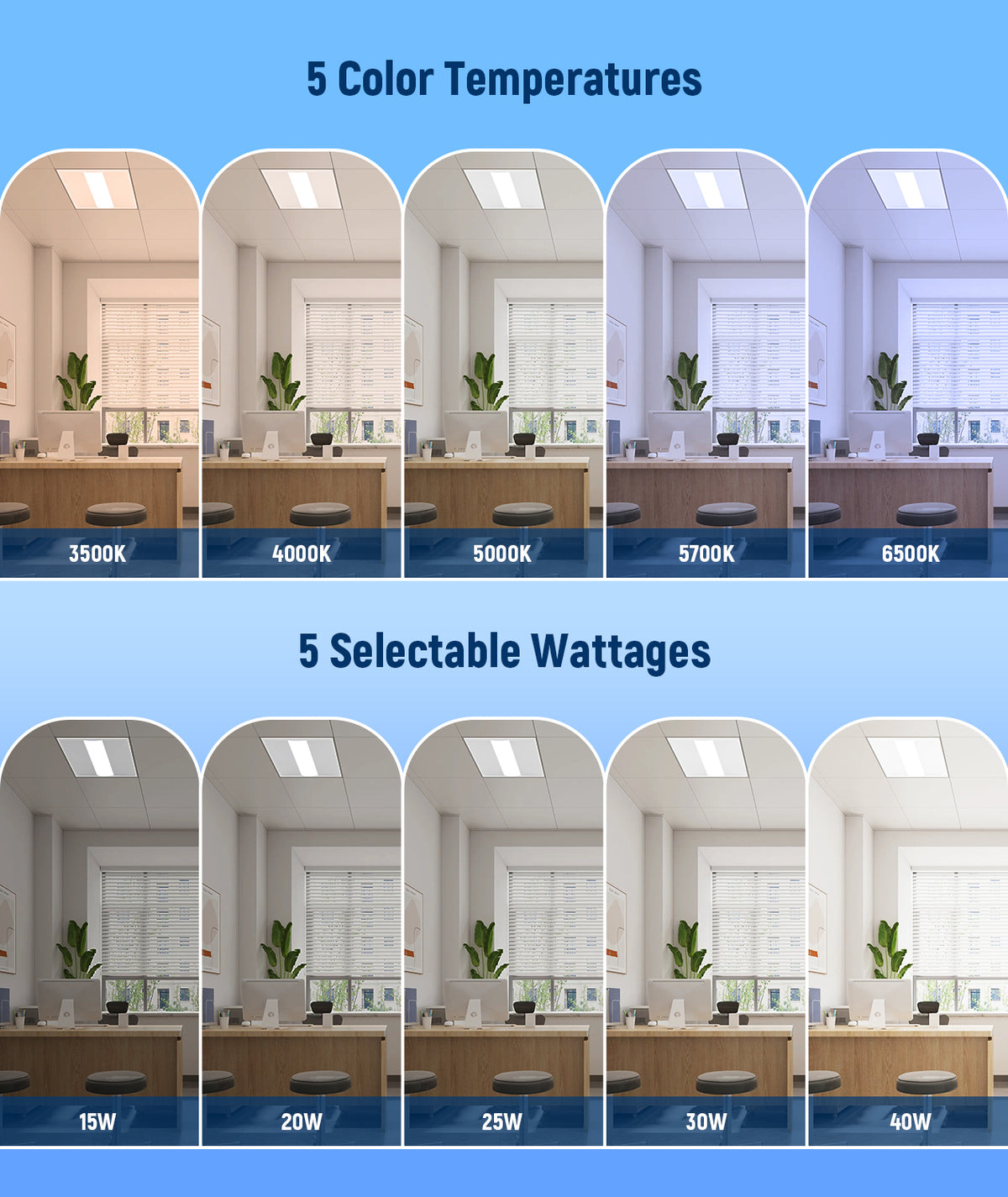 Selectable Wattage & CCT for flexible configuration