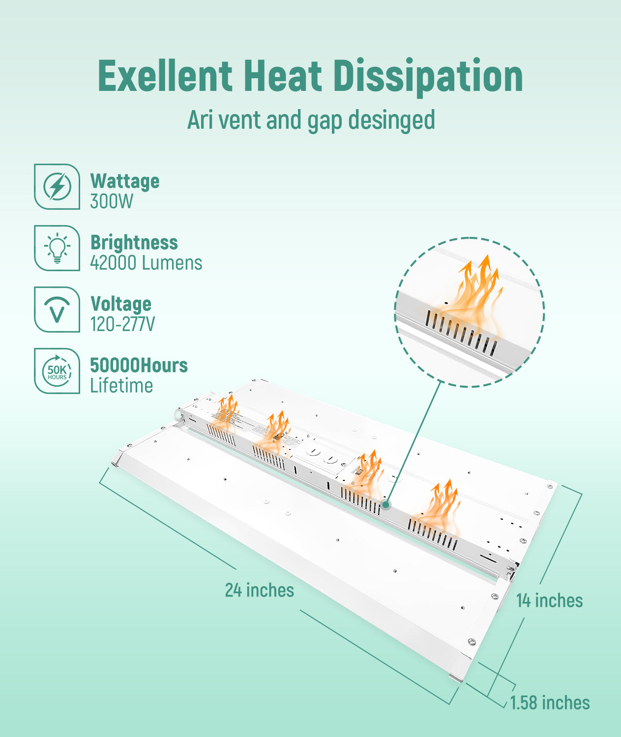 Maximum output up to 45000 lumens with 150 lm/W high efficiency, providing bright and uniform illumination for large areas.