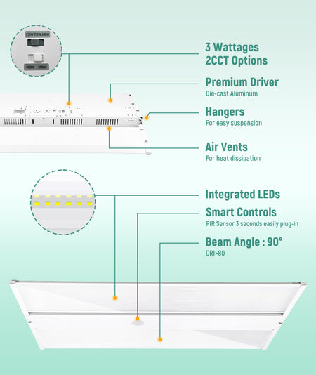 LED Linear High Bay Light-LHB09 120-277V 300W 45000 Lumens 1FT x 2FT UL DLC with Sensor Base | 300W